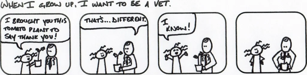 One time, I needed two days off very close to one another. To make it work, Dr. Bashara worked both of my shifts. I needed a way to say thank you very, very much, so I drew this for him. And also…I gave him some tomato plants.